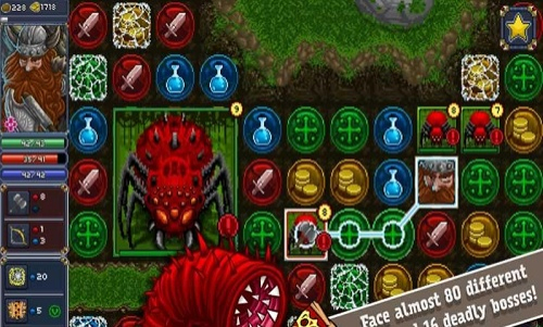 1、玩家通过三消机制探索地图,消除方块以触发移动、攻击或特殊技能,与怪物展开战斗。