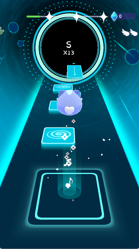 4、以及游戏目标是跟随不同曲子完成跳跃挑战,准确踩中每一个音乐方块,获得高分评价。