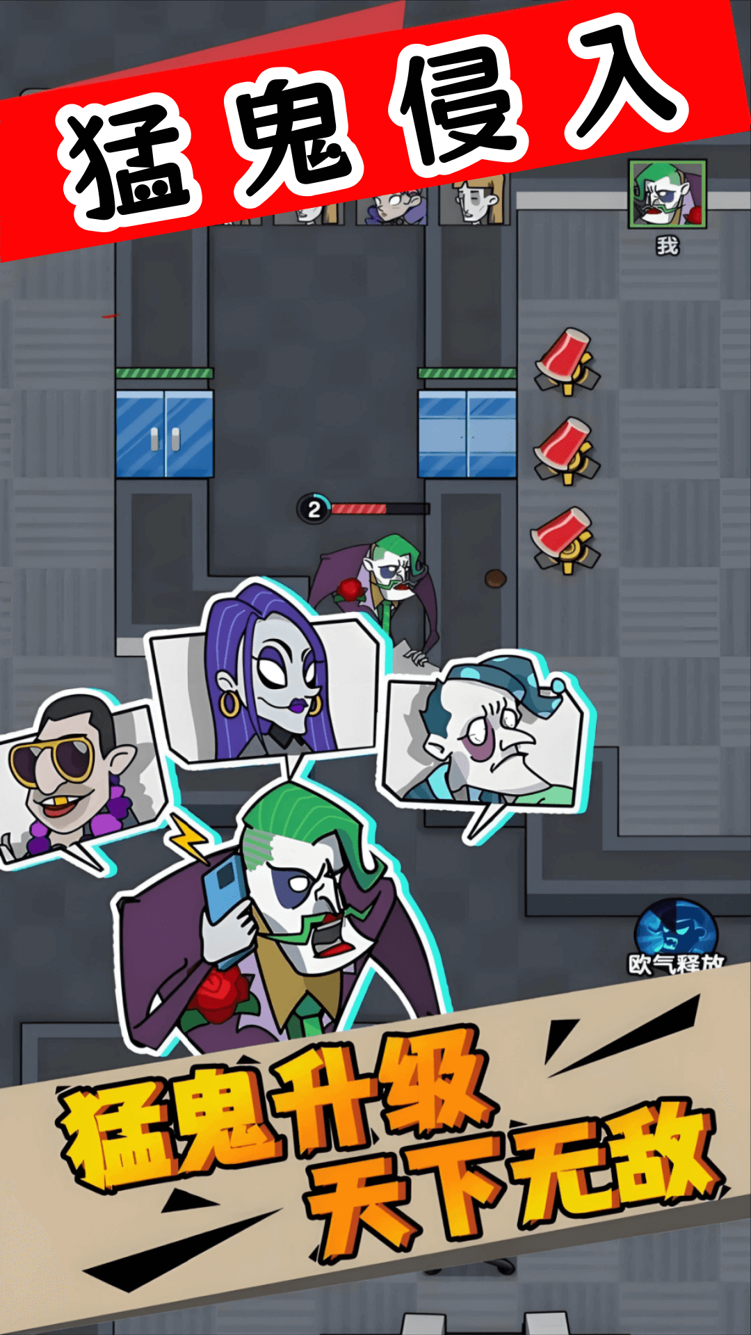 猛鬼侵入游戏是一款画风很恐怖的休闲塔防游戏,熟悉的猛鬼元素,还有多样化的模式,你可以自由的选择一个开启你的策略之战,你作为一名想躺平的员工,为了应对猛鬼老板的攻击,你要小心的躲避和升级,完成一个个的挑战任务!