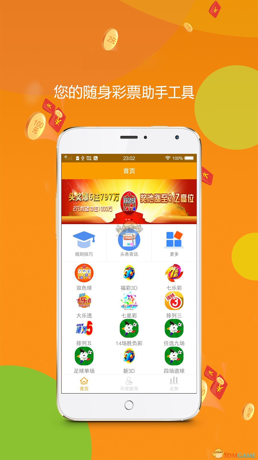 2、每日签到,彩票、红包、积分、加奖券免费领。