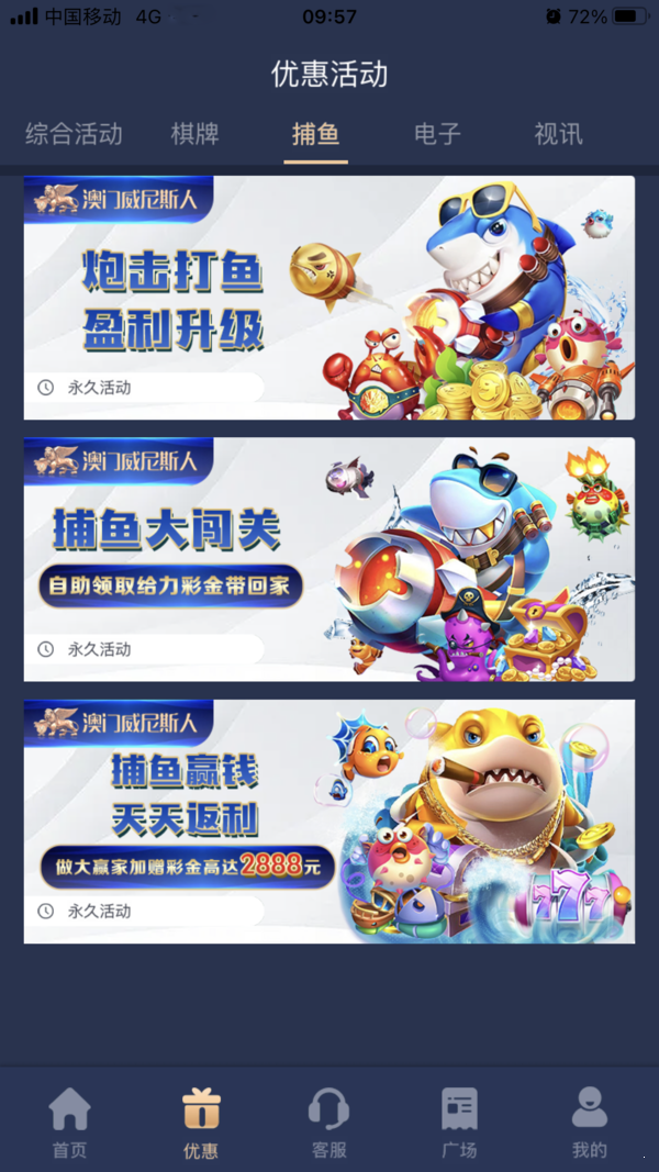 特殊捕鱼渔场场次掉花色,花色组合每日可赢实物大奖。