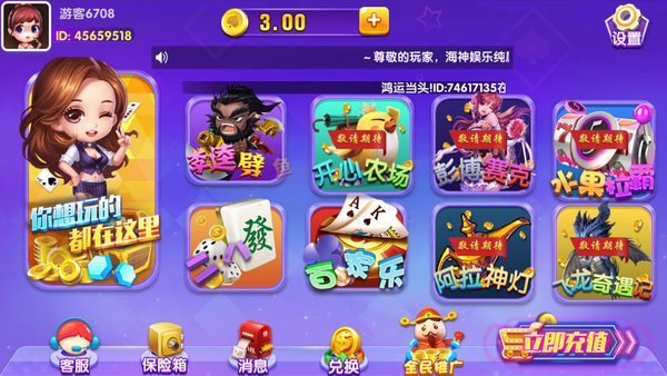 海神娱乐是一款口碑公平的棋牌平台。这款棋牌游戏汇集了目前市面上最热门的棋牌玩法。
