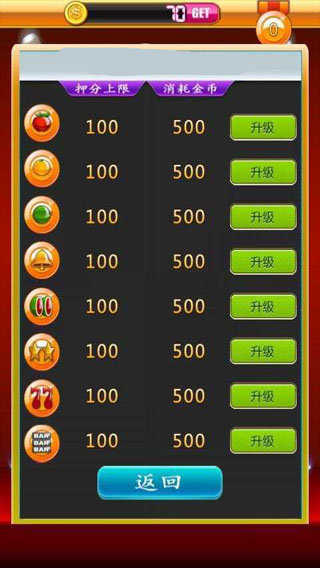 提供经典水果机的游戏体验,包括拉杆、旋转转轮等经典元素。